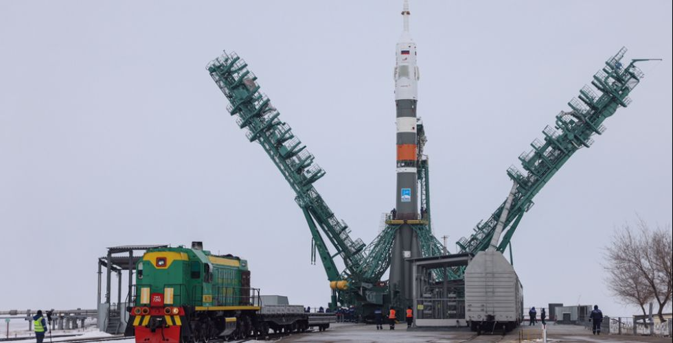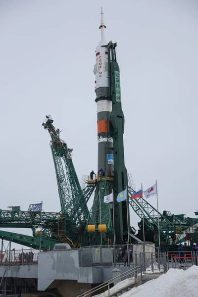 Ракету «Союз-2.1а» с беспилотным кораблём «Союз МС-23» успешно установили в вертикальное состояние и продолжили готовить к запуску.