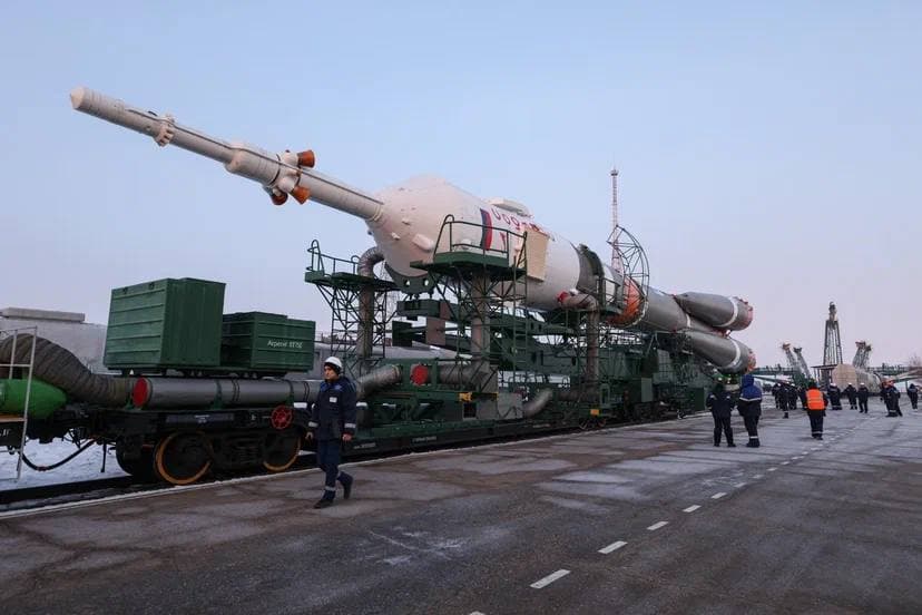 Как сообщает пресс-служба, сегодня утром, 21 февраля 2023 года, в 7:30 утра по местному времени, на Байконуре открыли ворота монтажно-испытательного корпуса, и железнодорожный состав с ракетой космического назначения двинулся на стартовый комплекс 31-й площадки космодрома Байконур.