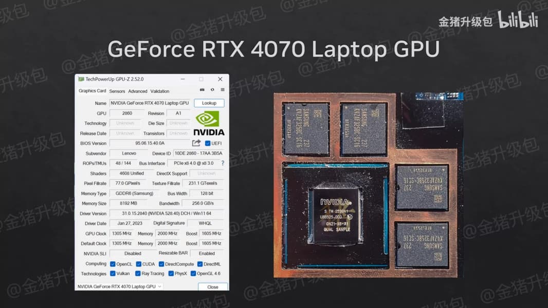 Вчера мы ознакомились с первыми тестами мобильных видеокарт RTX 4050 Laptop, RTX 4060 Laptop и RTX 4070 Laptop, где адаптеры показали себя энергоэффективными, но не особо быстрыми в сравнении с предшественниками. Конечно, стоит дождаться большего числа тестов, но уже сейчас можно отметить одну важную деталь. Похоже, Nvidia ограничила свои новые видеокарты сильнее, чем сама указывает, и в итоге адаптеры просто не показывают свой максимум.