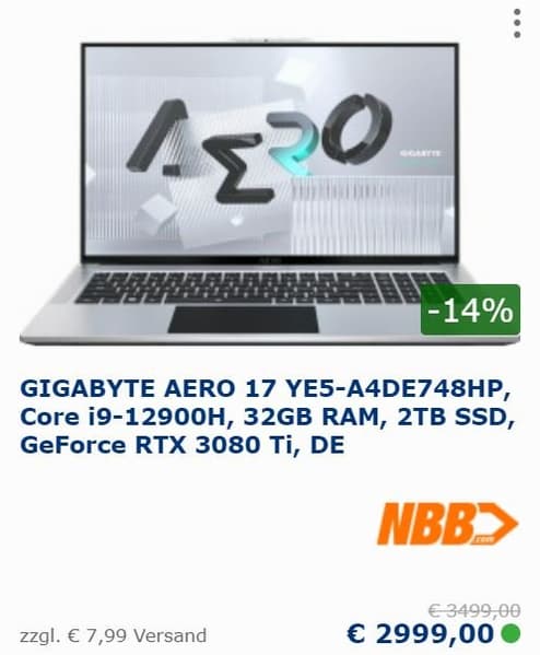 Дешевеют прошлогодние игровые ноутбуки и в Европе, но порядок цен тут, конечно, другой. Например, Gigabyte Aero 17 c Core i9-12900H, 32 ГБ ОЗУ, SSD объемом 2 ТБ и GeForce RTX 3080 Ti Laptop подешевел с 3500 евро до 3000 евро. Или вот другой пример: стоимость HP Omen 16 с Ryzen 7 5800H, 16 ГБ ОЗУ, SSD объемом 512 ГБ и GeForce RTX 3070 Laptop снизилась с 1500 до 1200 евро.