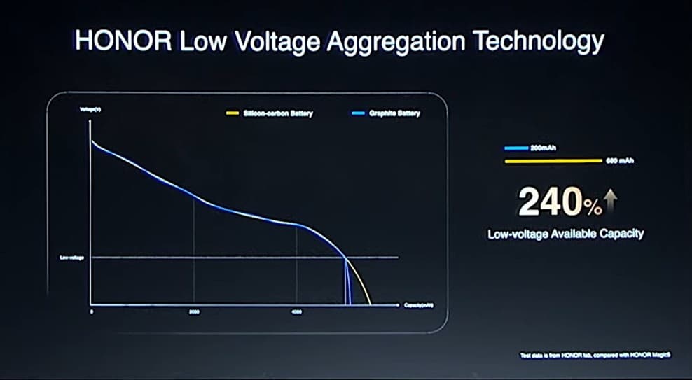 Согласно данным Honor, плотность энергии у таких аккумуляторов на 12,8% выше, чем у обычных. Для примера, если бы такой элемент получил анонсированный сегодня флагман Magic5 Pro, то ёмкость аккумулятора была бы равной около 5450 мА•ч против имеющихся 5100 мА•ч.