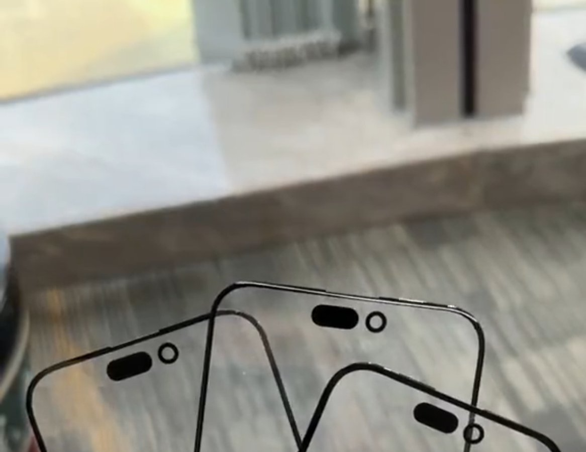 Предположительно на фотографии показано стекло для iPhone 15 Pro и iPhone 15 Pro Max с зауженной рамкой, а также для iPhone 15 — с более широкой.