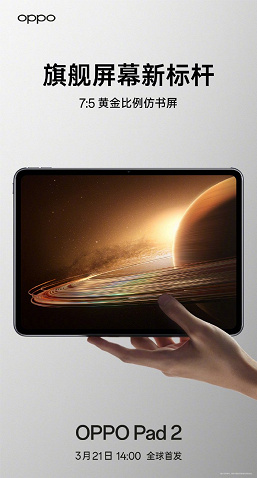Сегодня Oppo опубликовала ряд тизеров, на которых продемонстрировала флагманский планшет Oppo Pad 2. Одновременно появилось первое изображение перспективного планшета рядом с предшественником и подробности об оснащении.