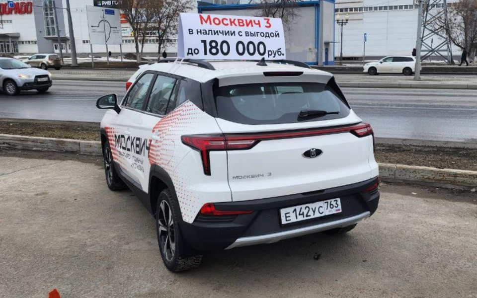 В двух автомобильных центрах бренда в Самаре подтвердили, что с 1 апреля начнут продавать «Москвич 3» со скидкой около 20%, при этом цена при покупке в кредит должна снизиться c 1 970 000 руб. до 1 600 000 руб. Для этого необходимо оформить покупку по программам льготного автокредитования «Первый автомобиль» или «Семейный автомобиль».