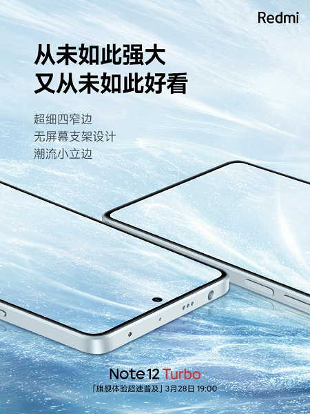 Известно, что у Redmi Note 12 Turbo будет флагманский плоский OLED-экран с высокой частотой ШИМ. Производитель заявляет, что это будет лучший экран в истории серии Redmi Note. Ширина рамки сверху составит 1,95, по бокам — 1,42 мм, а подбородок будет равен 2,22 мм.
