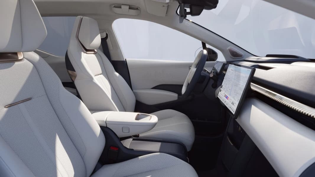 Дисплеев в этом автомобиле два: в составе цифровой приборной панели и в составе медиасистемы. Диагональ второго равна 14,6 дюйма, и он не будет закреплён стационарно: экран можно будет перемещать ближе к переднему пассажиру или к водителю. Второй момент связан с рулём: на спицах его разместились сенсорные площадки, а кнопки расположены на приливе внизу. Видео чётко демонстрирует пять подсвеченных пиктограмм.