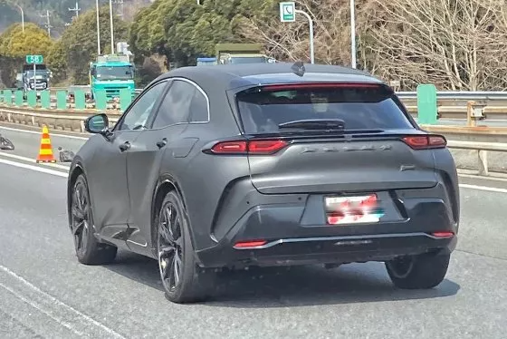 Toyota Crown Sport затянут в матовую плёнку без камуфляжного окраса, поэтому все детали можно рассмотреть. Скрыты только название модели на крышке багажника и надпись PHEV в углу.