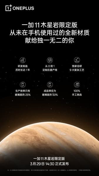 Официальная премьера OnePlus 11 Jupiter Rock Limited Edition состоится 29 марта.