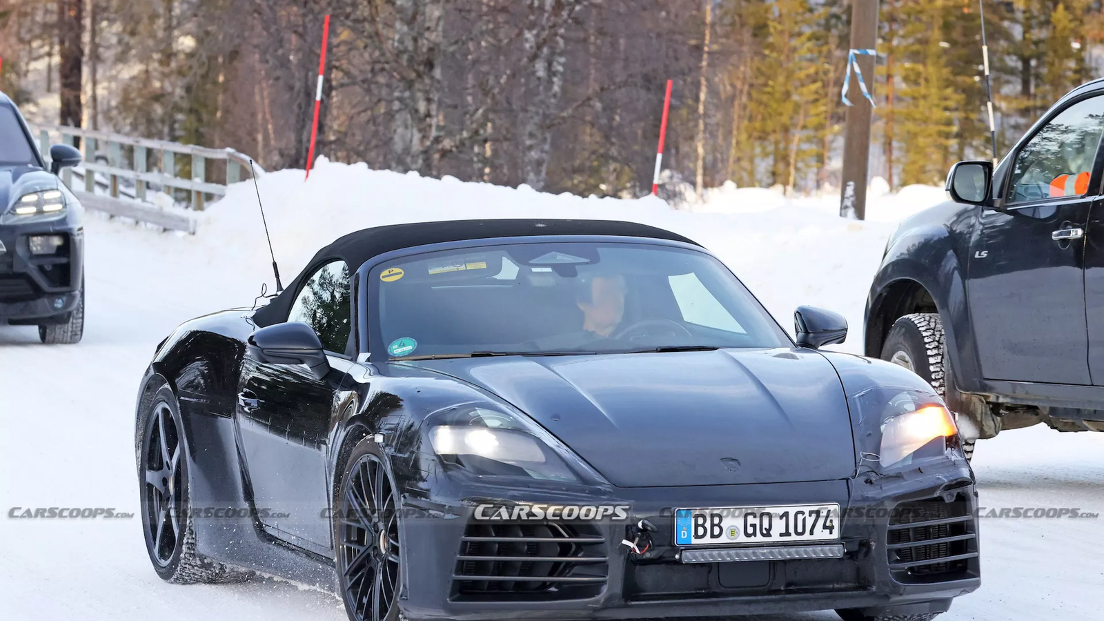 Фотографы Сarscoops заметили членов тестовой команды Porsche, поднимающих сумки из переднего багажника электрического Porsche Boxster 2025. Снимки сзади подтверждают, что задний багажник также присутствует.