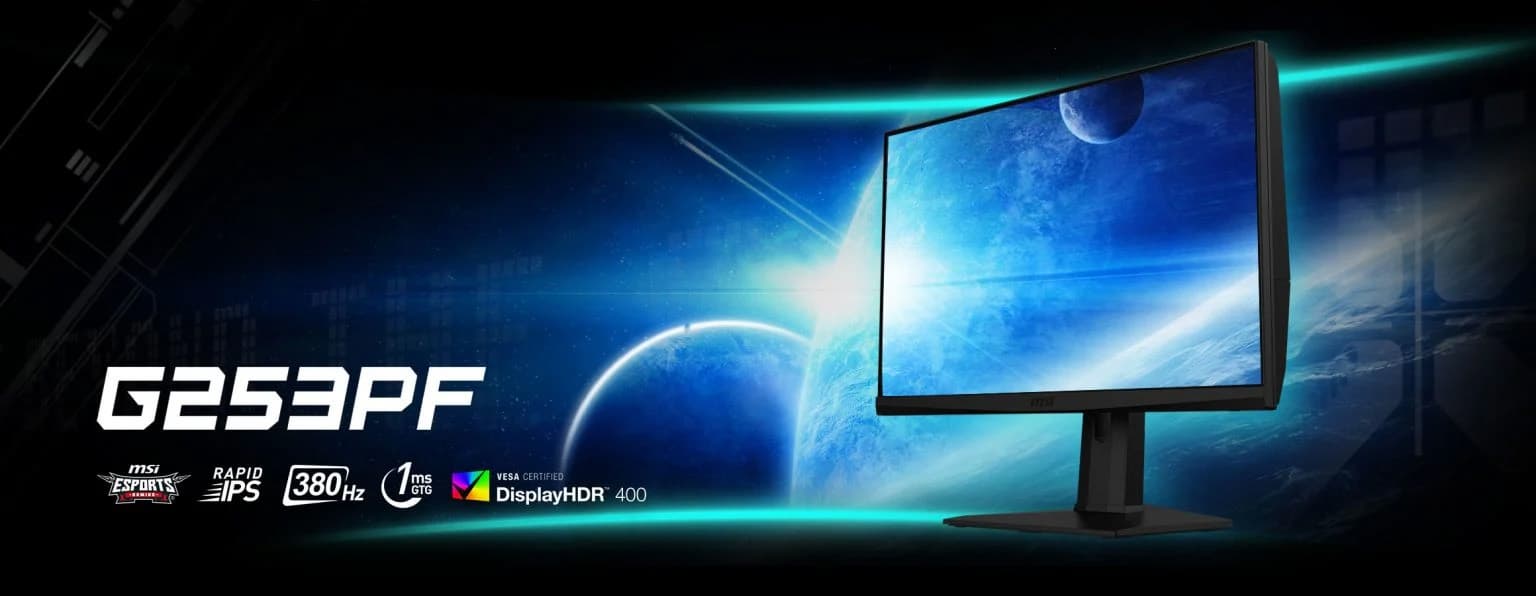 Ассортимент MSI пополнился новым монитором — G253PF. В устройстве используется панель IPS с диагональю 24,5 дюйма, разрешением Full HD и высокой кадровой частотой 380 Гц. Заявленное время реакции пикселя (GtG) — всего 1 мс, максимальные яркость и контрастность — 300 кд/кв.м и 1000 : 1 соответственно.