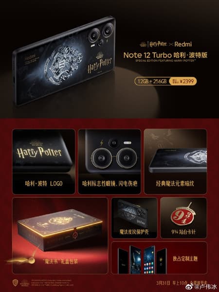 Президент Xiaomi и Redmi Лу Вейбинг официально подтвердил, что смартфон Redmi Note 12 Turbo Harry Potter Edition сегодня поступил в продажу в Китае одновременно со стандартным изданием.
