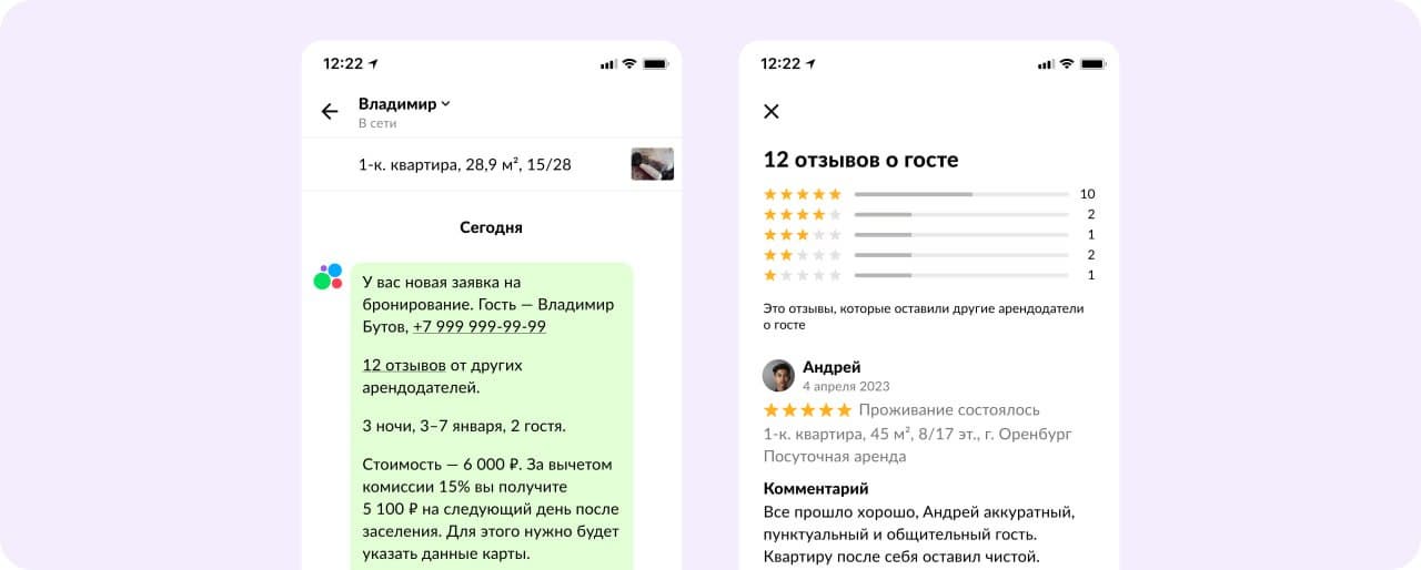 Новая опция доступна в категории «Посуточная аренда». Собственники и управляющие жилья теперь смогут оценить проживание гостя и оставлять комментарий: что понравилось, а что нет. Отзыв увидят другие арендодатели, у которых этот гость в будущем будет снимать жильё посуточно. Арендодатель сможет посмотреть отзывы и оценки гостя только непосредственно при бронировании жилья