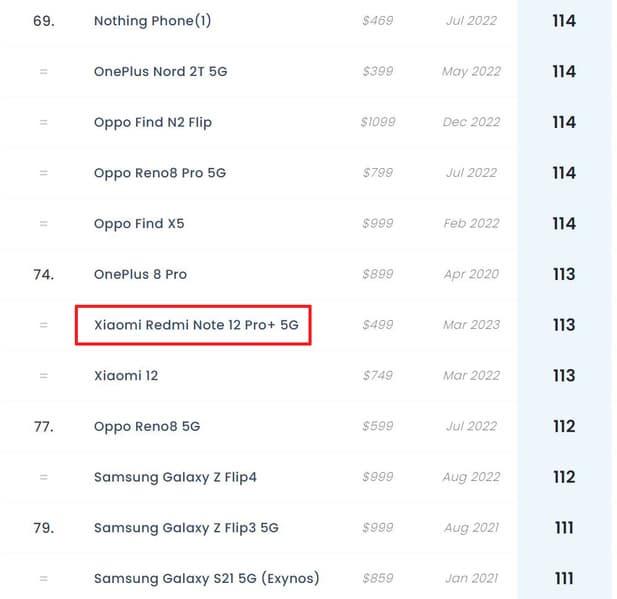 Анонсируя 200-мегапиксельный Redmi Note 12 Pro+ в прошлом году, Redmi не скупилась на похвалу его камере. Сейчас специалисты DxOMark опубликовали объемный тест камеры модели, и выглядит он как настоящий провал: со своим 74 местом и 113 баллами Redmi Note 12 Pro+ уступил не только всем флагманам текущего и прошлого года, но даже таким моделям среднего уровня, как Honor 70, Nothing Phone (1) и OnePlus Nord 2T 5G.