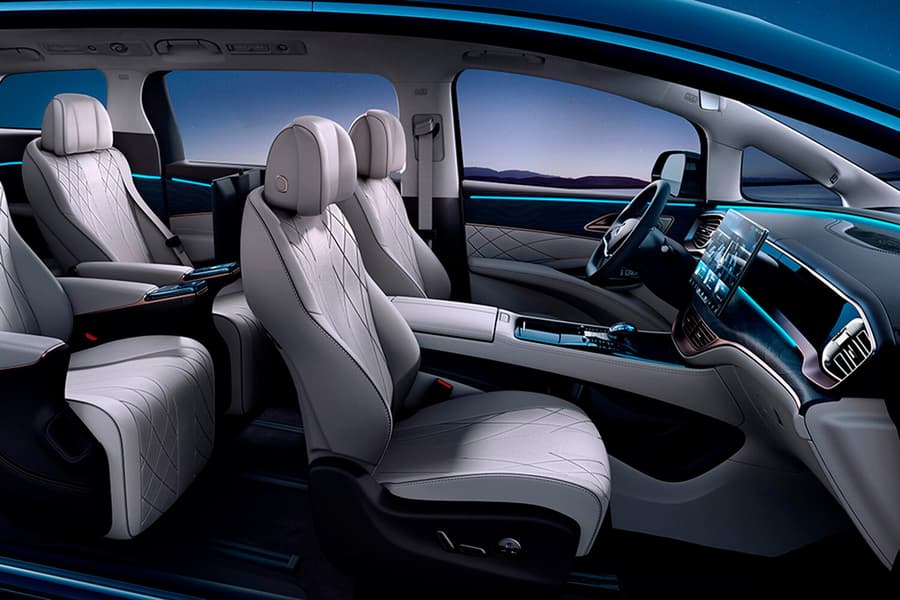 Габариты автомобиля составляют 5250 х 1960 х 1920 мм при колёсной базе 3110 мм. Автомобиль получил дистанционное открытие задней двери с помощью беспроводной технологии UWB, капитанские кресла на втором ряду с многочисленными регулировками и функцией массажа, панорамную крышу с большим люком и даже холодильник. Автомобиль получил семь экранов, включая три на передней панели: 10,25-дюймовую приборную панель, 15,6-дюймовый центральный дисплей и проекционный экран. Ещё два находятся на спинках передних сидений и два — на подлокотниках второго ряда кресел. В отделке салона используется кожа наппа и дерево.