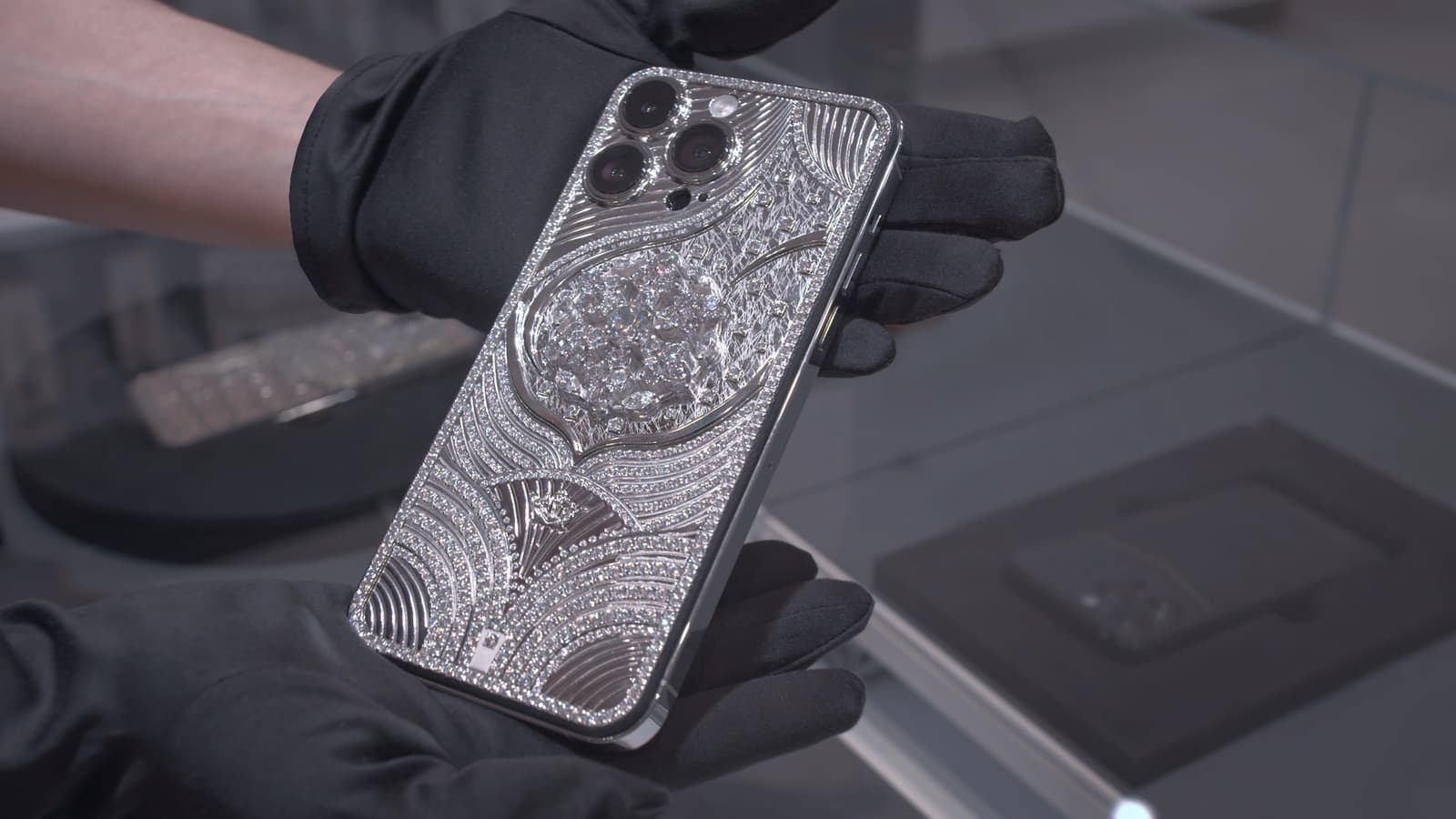 Корпус смартфона из белого золота украшен россыпью из 570 бриллиантов, а цена такого экспоната составляет 36 000 000 рублей. Из соображений безопасности в витрину в ЦУМе помещена его копия с серебряным корпусом и кристаллами Swarovski.