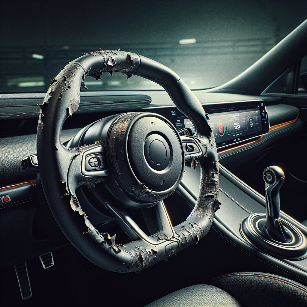 Проблема, по-видимому, связана с использованием экокожи для этой детали. Даже после замены многие сообщали, что проблема проявилась и на новом штурвале.