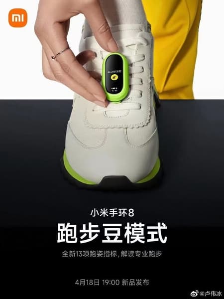 Кроме того, Лу Вейбинг опубликовал новое фото Xiaomi Mi Band 8 и подтвердил, что гаджет можно будет не только носить на руке или на шее, но и, например, закрепить на кроссовках. В специальном режиме устройство сможет точно подсчитывать длину и частоту шага, а также другие характеристики.