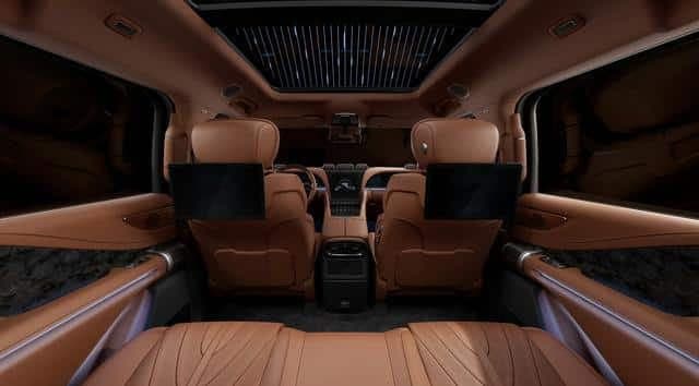 Автомобиль получит действительно роскошный интерьер, навевающий ассоциации с Bentley или Rolls-Royce. Все сиденья обтянуты коричневой кожей Nappa, а крыша с парящим звёздным небом может быть украшена различными узорами.