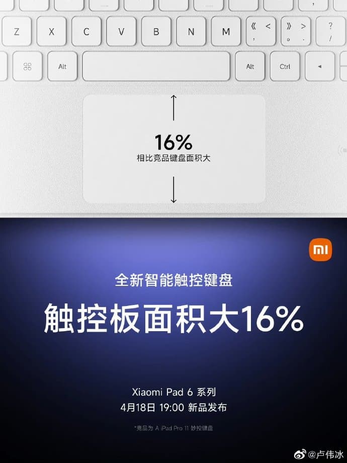 Президент Xiaomi и Redmi Лу Вейбинг официально подтвердил, что новая серия флагманских планшетов Xiaomi Pad 6 получит интеллектуальную сенсорную клавиатуру.