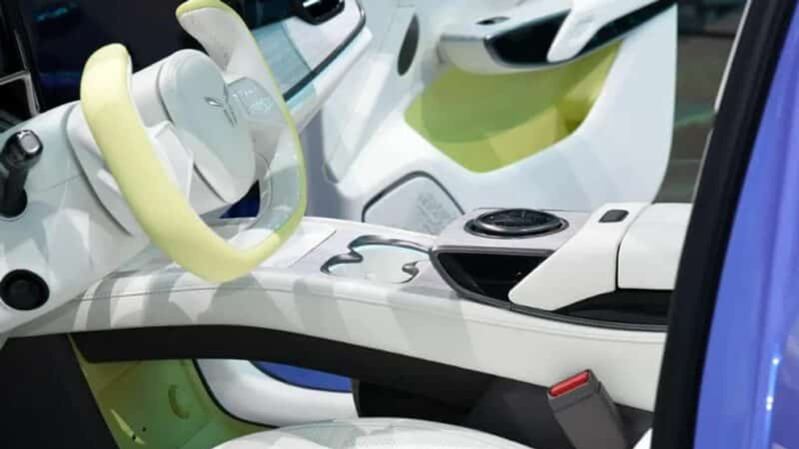 В салоне расположены необычный руль, изогнутая панель, которая включает электронную панель приборов и экран мультимедийной системы. Центральная консоль также оснащена панелями для зарядки мобильных телефонов и подстаканниками.