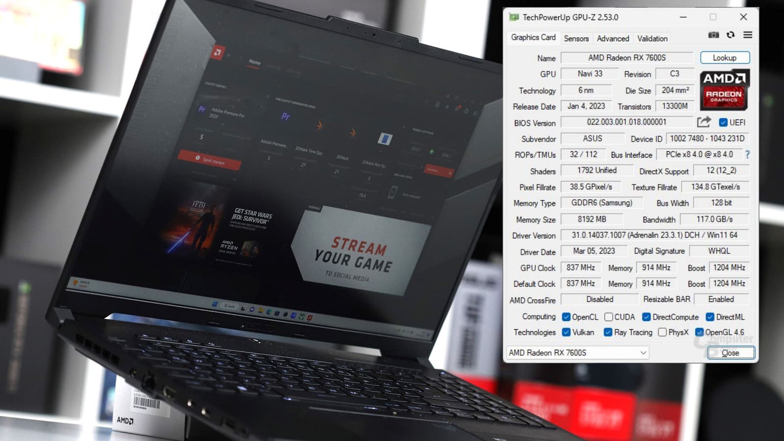 GPU тестировался в составе ноутбука Asus TUF Gaming A16, основанного также на APU Ryzen 7 7735HS. RX 7600S — единственный вариант дискретного адаптера для этого ПК.