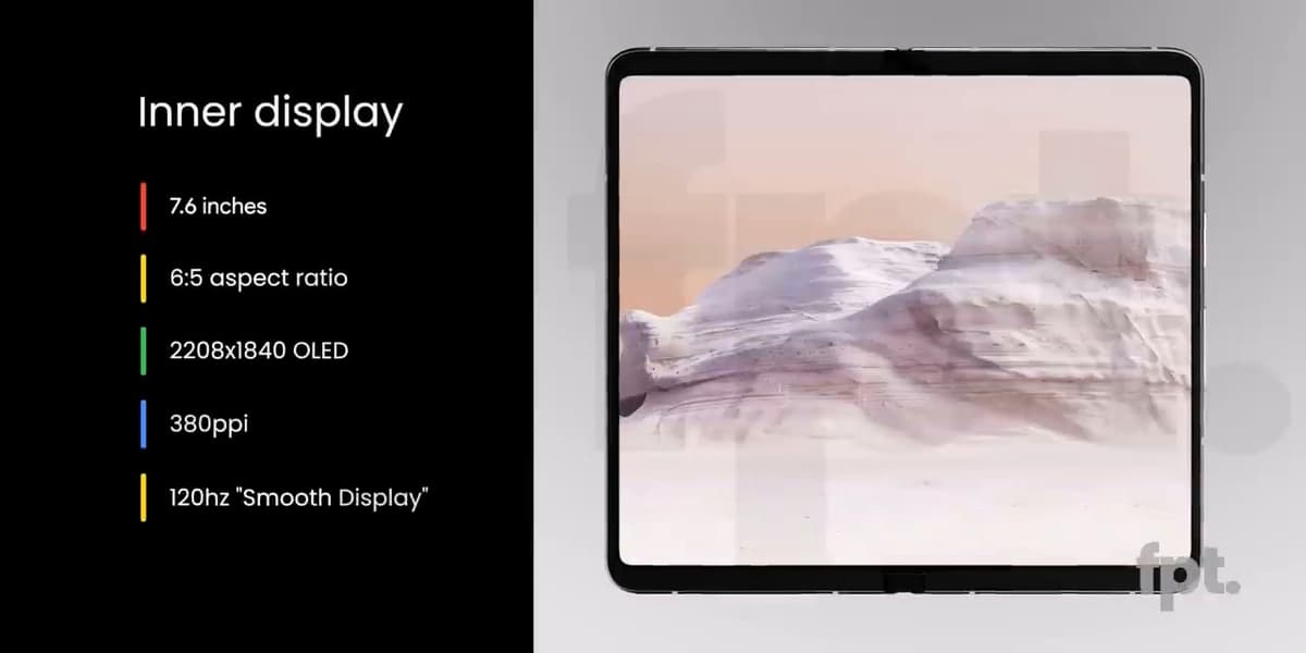 Судя по слитым данным, Google Pixel Fold окажется одним из самых компактных смартфонов в своей категории: диагональ наружного экрана составит всего 5,8 дюйма, внутреннего – 7,6 дюйма. В обоих случаях будут использоваться панели OLED с кадровой частотой 120 Гц, разрешение наружного дисплея составит 2092 х 1080 пикселей, внутреннего 2208 х 1840 пикселей.