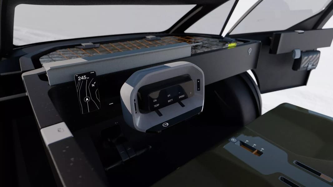 Ещё одной интересной особенностью становится передняя часть кабины под лобовым стеклом. Там компания предлагает разместить солнечную панель для генерации электричества.