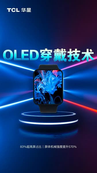 TCL CSOT показала на тизерном изображении передовой экран OLED для умных часов. Ширина рамки устройства составляет 1,65 мм, за счет этого дисплей занимает 83% площади фронтальной панели.