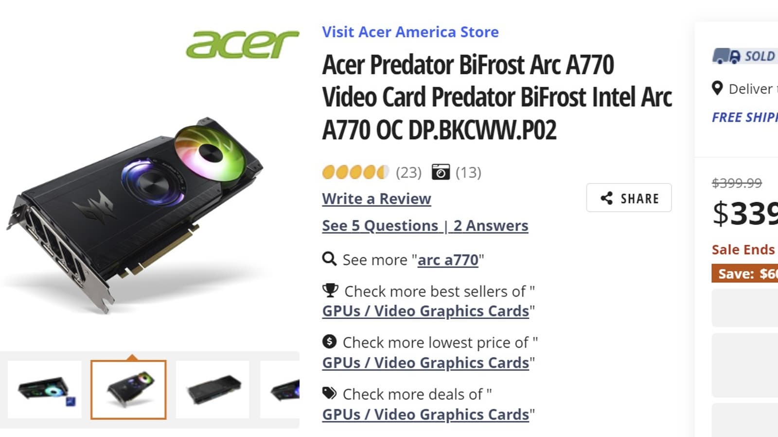 Модель Acer Predator A770 BiFrost с уникальной системой охлаждения с двумя вентиляторами разного типа подешевела именно до 340 долларов. Изначально за адаптер просили 400 долларов.