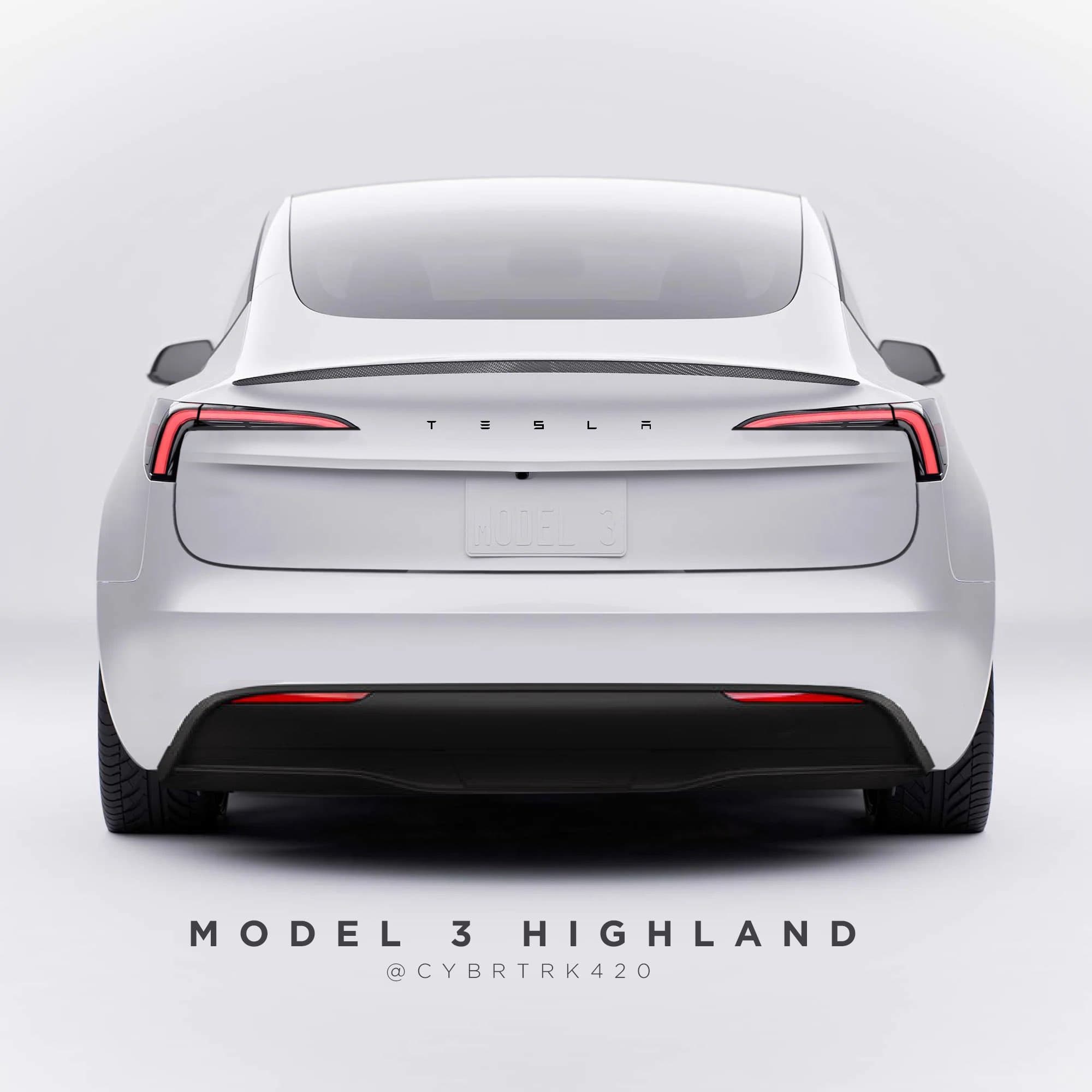 В апреле в сети появилось первое фото, на котором Tesla Model 3 с кодовым названием Highland впервые показали спереди без камуфляжа. На новых рендерах автомобиль показан сзади. Утечки указывают на то, что автомобиль получит фонари в новом дизайне.