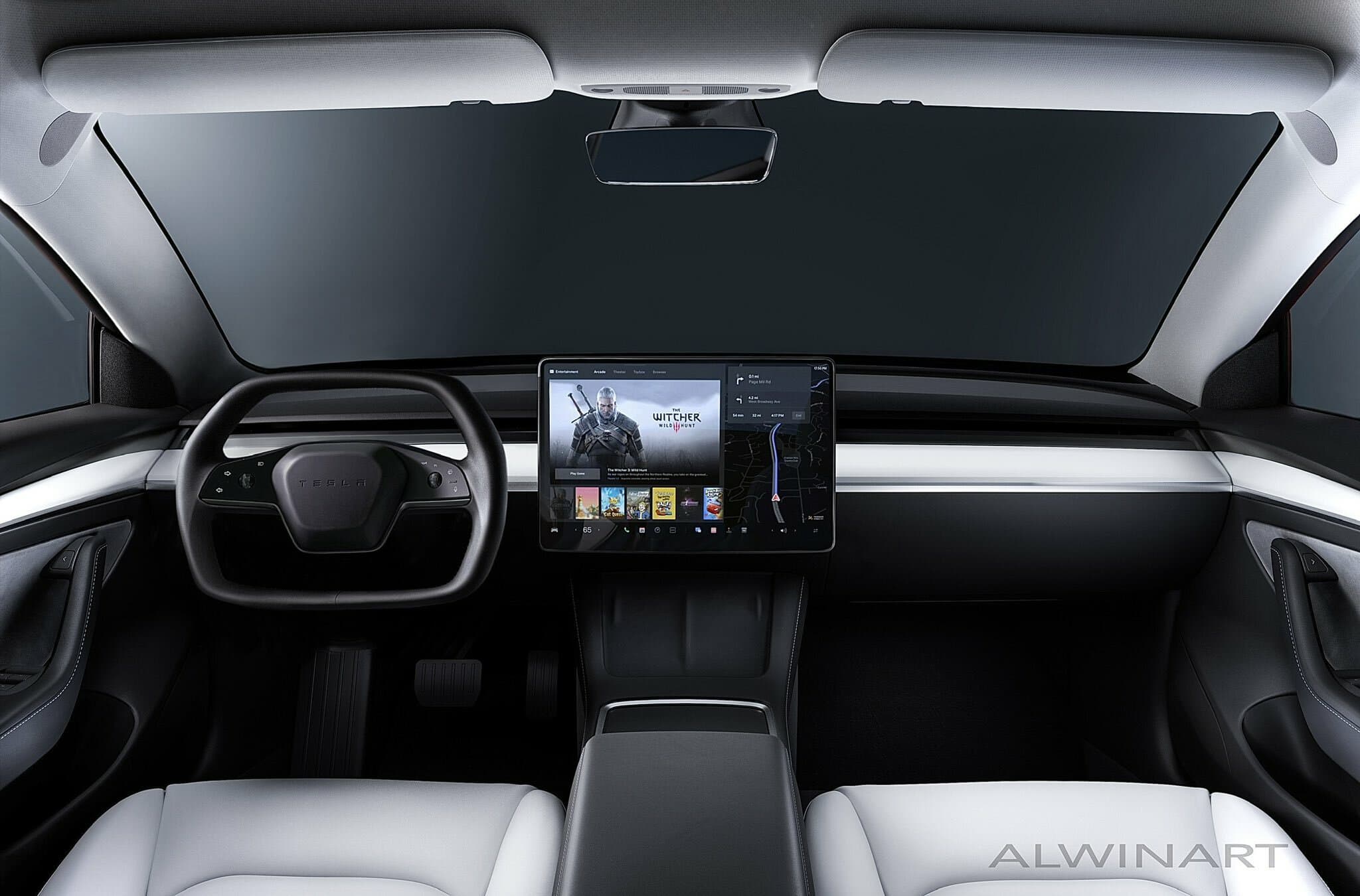 Carscoops также опубликовал рендер салона новой Tesla Model 3, который демонстрирует изменённое рулевое колесо, удалённые подрулевые переключатели и обновлённый экран.