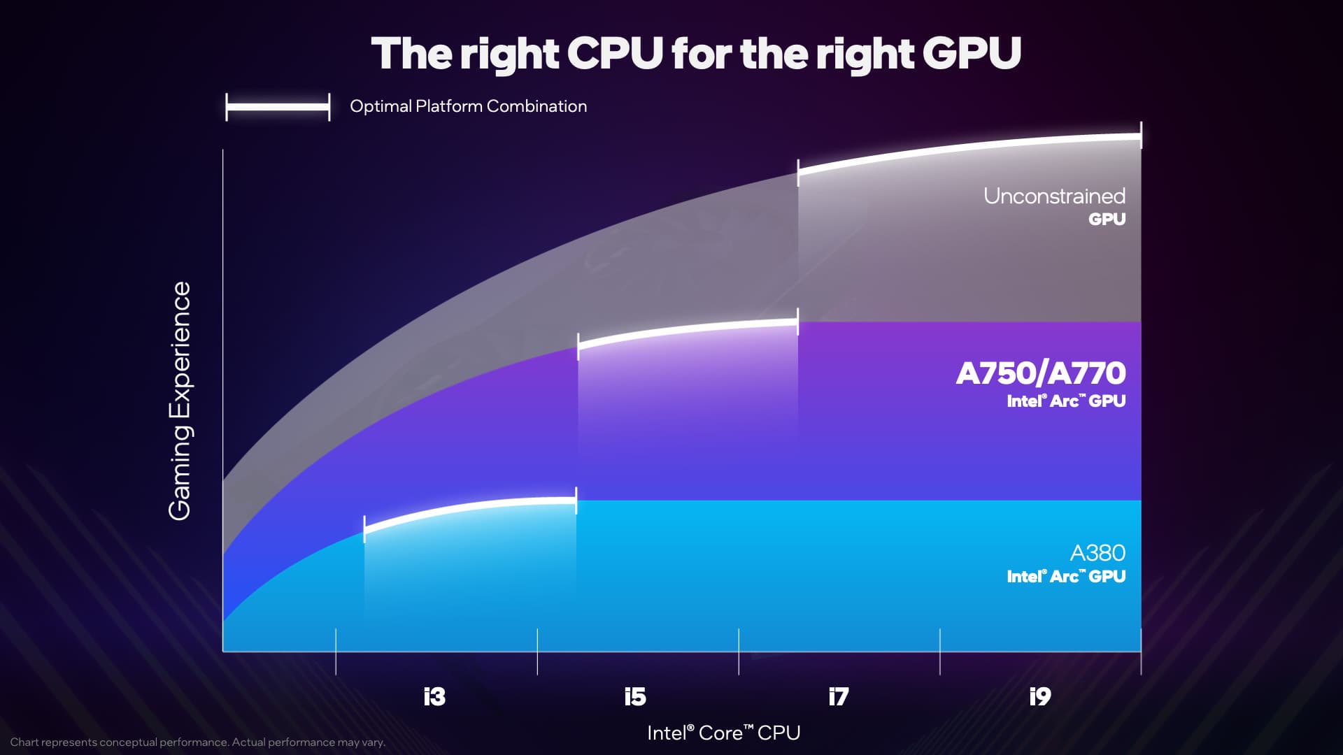 Суть идеи Intel весьма проста: компания протестировала связки из разных CPU и GPU, сделав 15 000 тестов, и наглядно показала, какие пары процессоров и видеокарт наиболее выгодны с точки зрения соотношения цены и производительности.