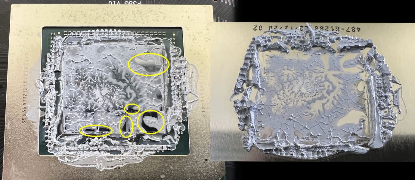 Автор портала Igor’sLAB решил разобраться в причинах многочисленных жалоб владельцев этих карт и действительно обнаружил проблему. Причём максимально банальную: оказалось, что у карт плохо нанесена термопаста на GPU.
