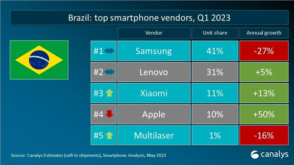 Пока в ряде стран смартфоны Motorola вспоминают очень редко, в других это один из лидеров рынка, активно набирающий обороты. К примеру, согласно свежим данным Canalys, в Бразилии Lenovo занимает второе место с долей 31%, уступая только Samsung с её 41%. При этом по итогам первого квартала Lenovo нарастила продажи на 5%, а у Samsung имел место спад на 27%.