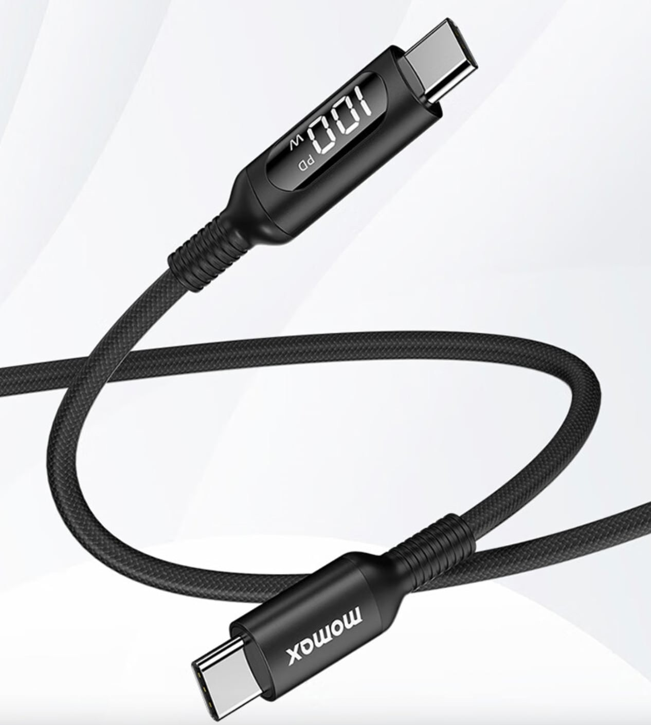 Компания Momax представила кабель для быстрой зарядки мобильных устройств, который оснащён небольшим дисплеем и поддерживает мощность до 100 Вт.