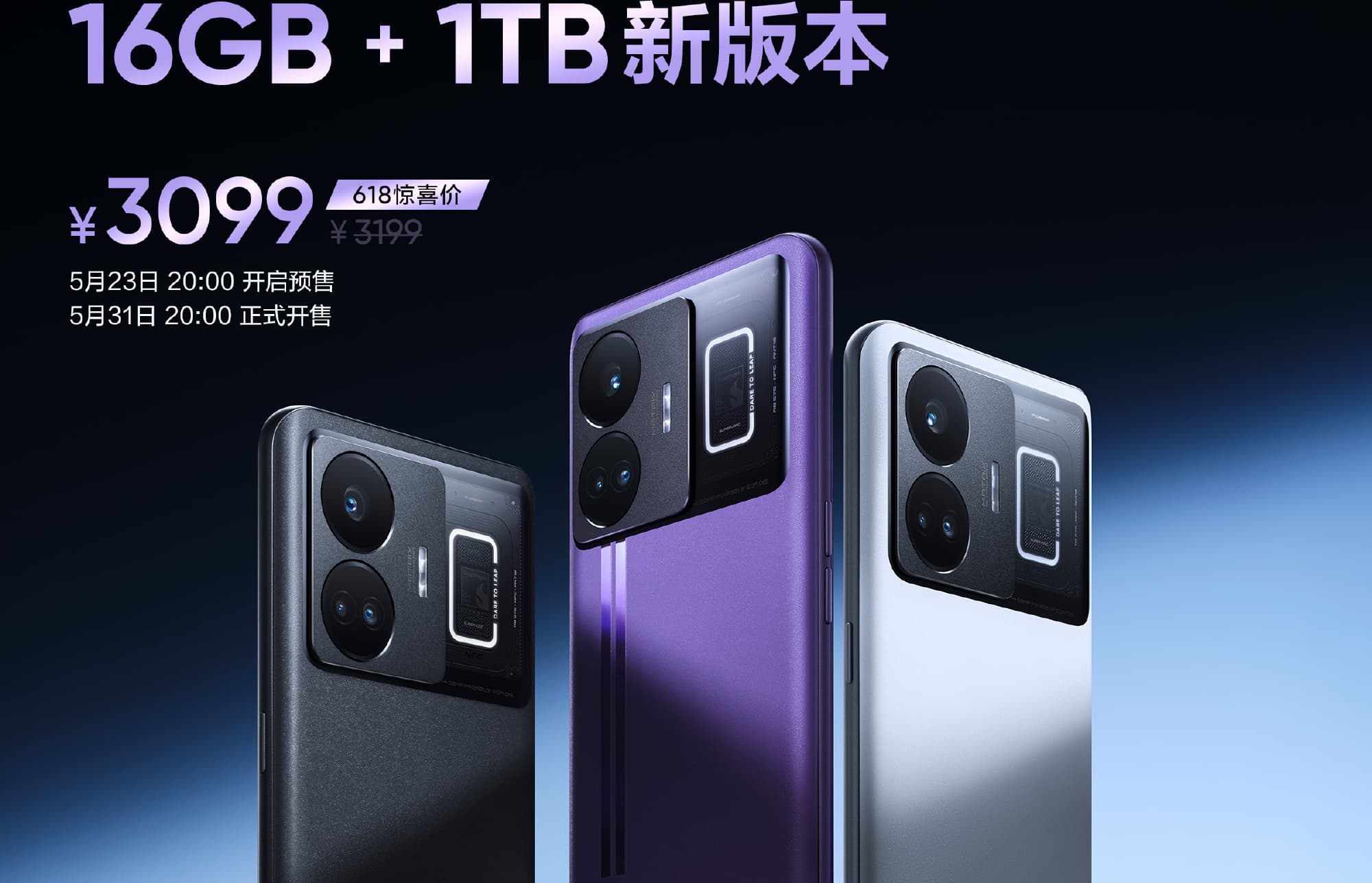 Новая версия Realme GT Neo5 оснащена 16 ГБ оперативной и 1 ТБ флеш-памяти. В Китае всё большую популярность набирают недорогие смартфоны с 1 ТБ флеш-памяти, которые, согласно опросам, часто используют в качестве внешних накопителей.