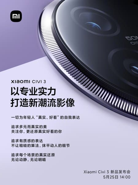 Официальная премьера «стильного» смартфона Xiaomi Civi 3 состоится 25 мая, но сегодня Xiaomi раскрыла о нём много подробностей.