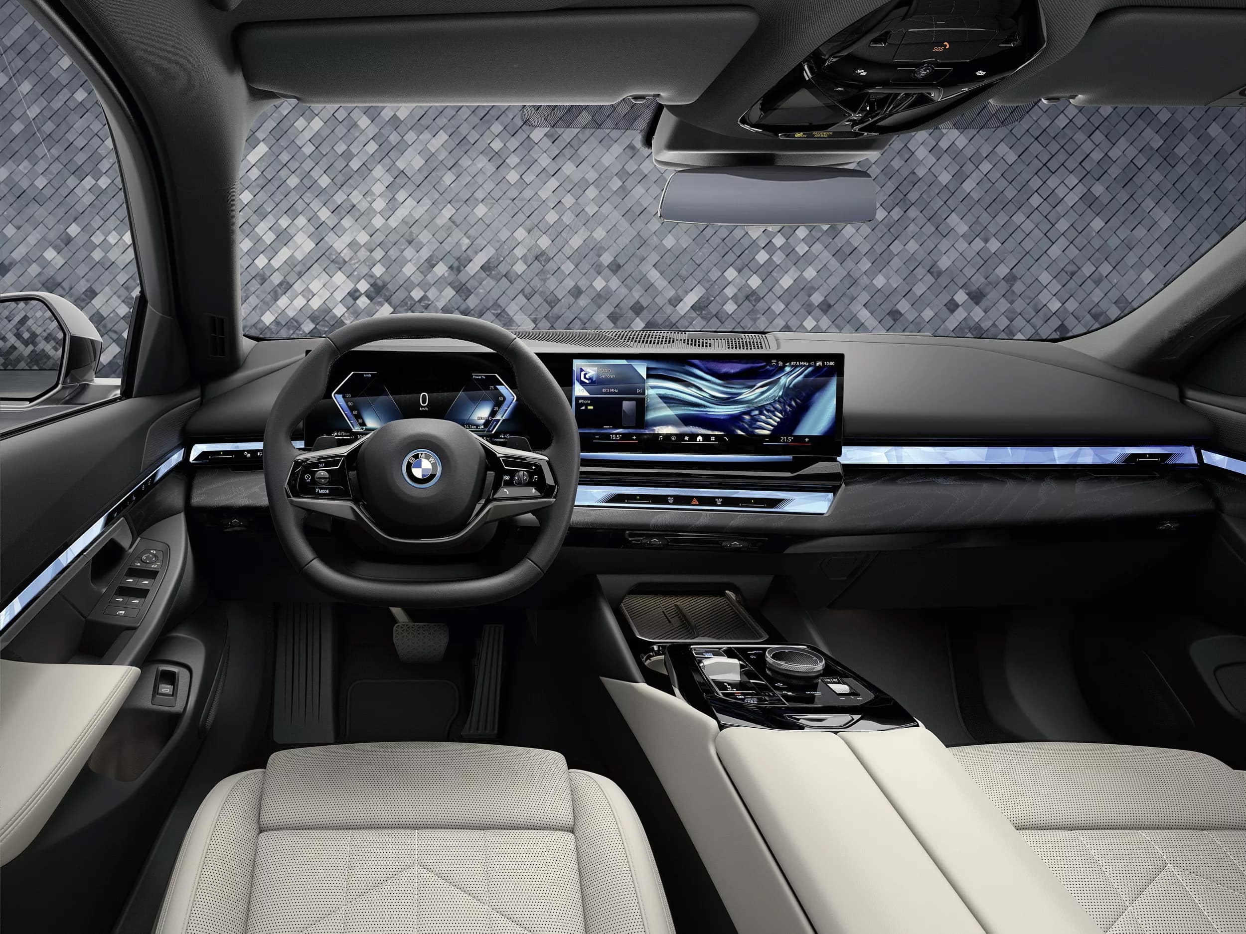 BMW не горела желанием обновлять медиасистему «пятёрки» предыдущего поколения, поэтому новая 5-Series в этом плане совершила скачок вперёд. Экран с диагональю 12,3 дюйма, установленный перед водителем, дополнен экраном с диагональю 14,9 дюйма в составе медиасистемы, причём это медиасистема последнего поколения — BMW iDrive 8.5 с улучшенным распознаванием голосовых команд и жестов.