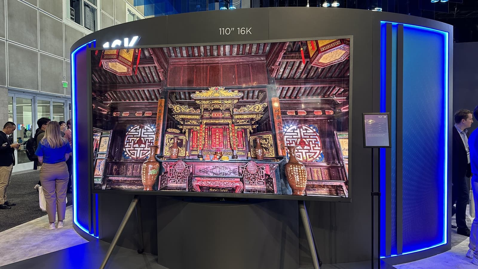 Компания BOE на Display Week 2023 показала первый в мире 110-дюймовый дисплей с разрешением 16K. Если точнее, разрешение панели составляет 15 360 х 8640 пикселей, что соответствует 132 Мп.