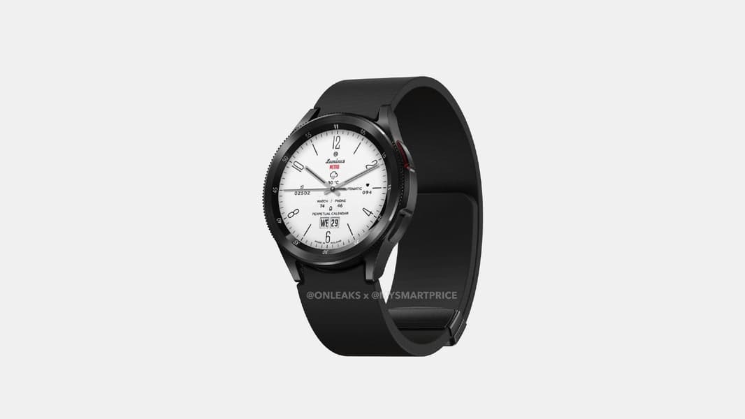 Если рендеры соответствуют действительности, то Galaxy Watch 6 Classic будут похожи на Galaxy Watch 4 Classic. Часы показаны в полностью чёрном матовом металлическом корпусе с силиконовым браслетом с магнитной застежкой. Они получат экран Super AMOLED диаметром 1,47 дюйма разрешением 470 x 470 пикселей.