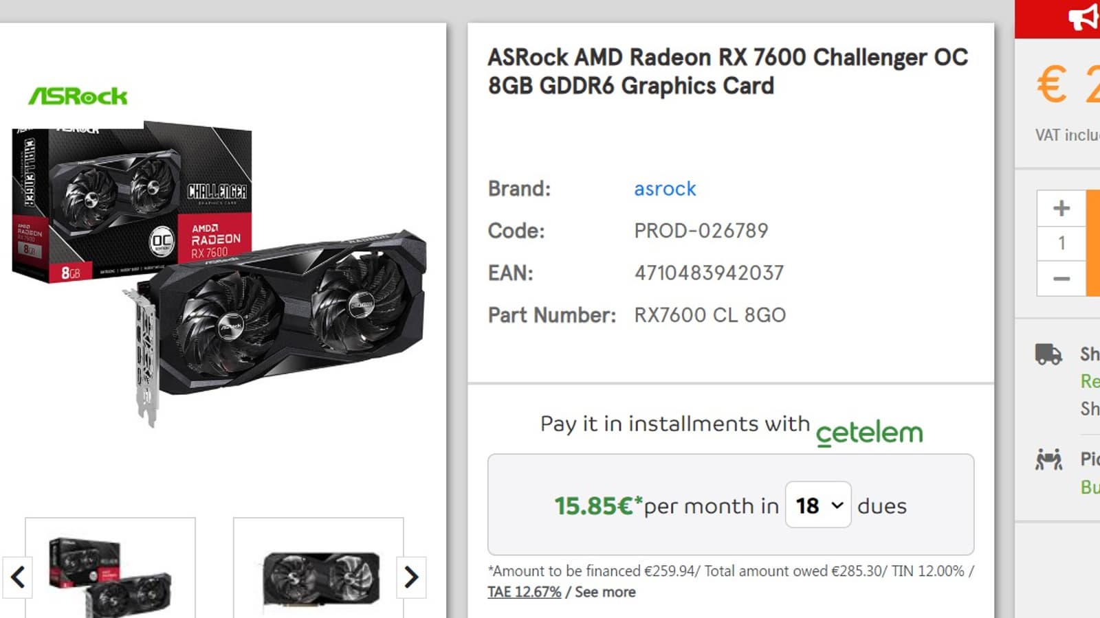 Если же посмотреть на цены в европейских агрегаторах, самые дешёвые из RX 7600, которые сейчас там имеются, начинаются с 297 евро.