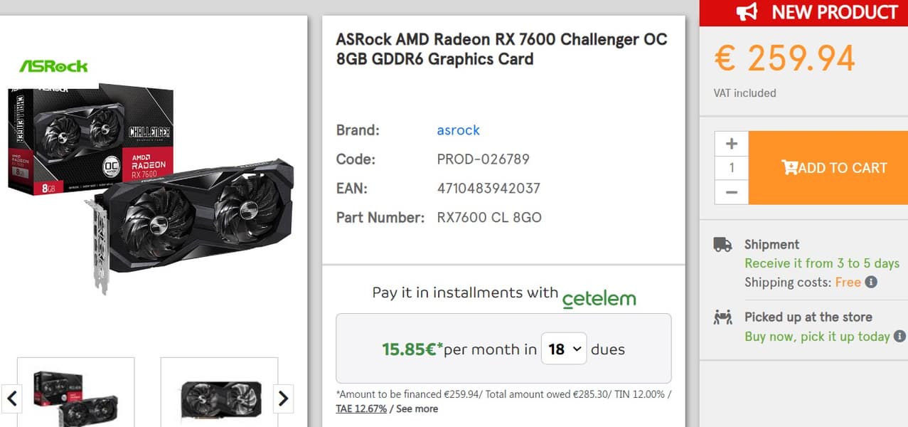 Ситуация с видеокартами актуального поколения, похоже, может войти в историю, как одна из самых странных. GeForce RTX 4060 Ti спустя четыре часа после старта продаж начали предлагать по цене на 20 евро ниже рекомендованной. Radeon RX 7600, которая и без скидок была самой выгодной современной видеокартой, согласно многим тестам, продержалась сутки: испанский продавец CoolMod продаёт адаптер ASRock всего за 260 евро. Относительно рекомендованной цены в 300 евро это скидка более чем на 13%.