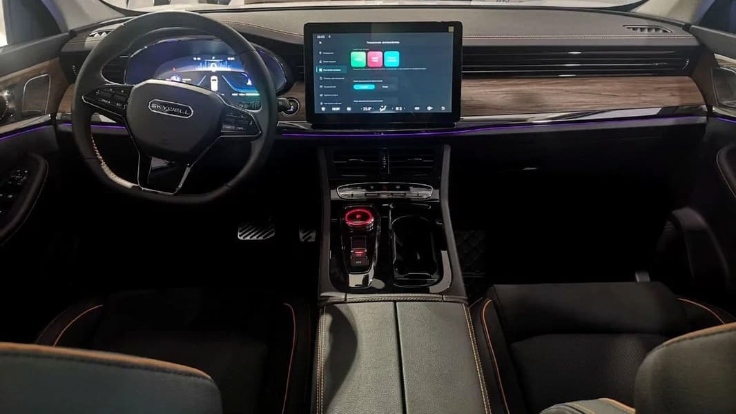 4,79 млн рублей — стоимость топовой версии Skywell HT-i. Она отличается увеличенной тяговой батареей (32,8 кВт·ч против 21,7 кВт·ч у предыдущих версий), наличием лазерных фар, возможностью делиться энергией тяговой батареи с внешними потребителями и медиасистемой Skyworth Movie с 9 динамиками.