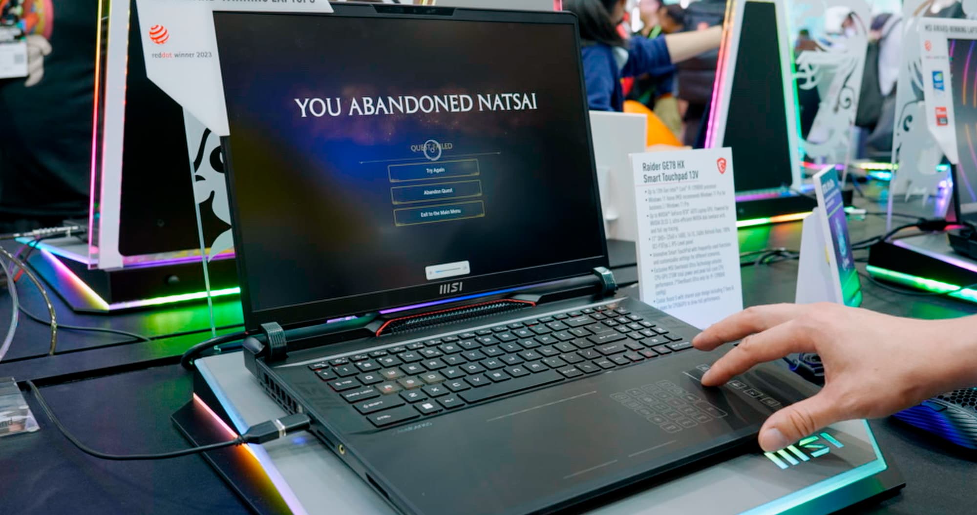 Raider GE78 HX Smart Touchpad — игровой ноутбук на базе процессора Intel Core i9-13980HX (в старшей конфигурации) и дискретной видеокарты Nvidia GeForce RTX 40-й серии (до 4070). 17-дюймовый экран разрешением QHD+ (2560x1600) имеет частоту обновления 240 Гц. Объём памяти — 32 ГБ, SSD — 1 ТБ. В режиме MSI OverBoost Ultra допустимое потребление CPU и GPU повышается до 140 и 75 Вт соответственно. Часть тачпада Raider GE78 HX Smart Touchpad можно переключить в режим дополнительной сенсорной клавиатуры с кнопками управления (включение Bluetooth, камеры, запуск Проводника, настройка громкости звука и яркости подсветки) и программируемых игровых кнопок. Ноутбук уже продается в России по цене 270 тысяч рублей.