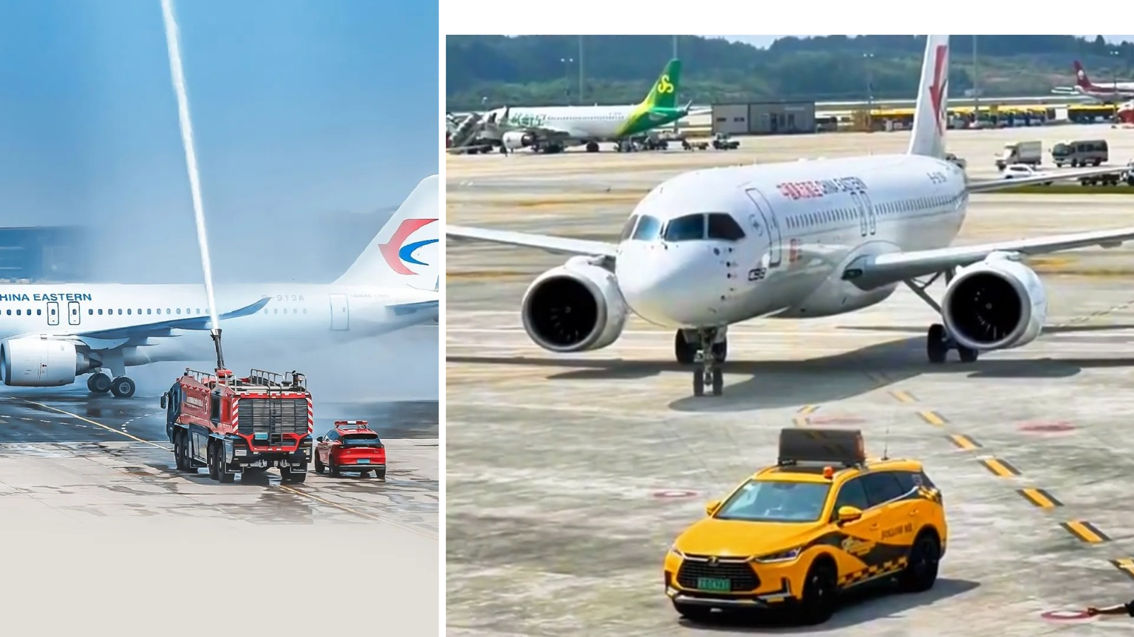 Пользователи сети заметили, что рядом с пожарной машиной стоял красный BYD Tang. С другого ракурса был виден жёлтый BYD Tang. Производитель подтвердил, что BYD удостоилась чести принять участие в историческом событии, а её автомобили помогали обслуживать первый рейс COMAC C919.