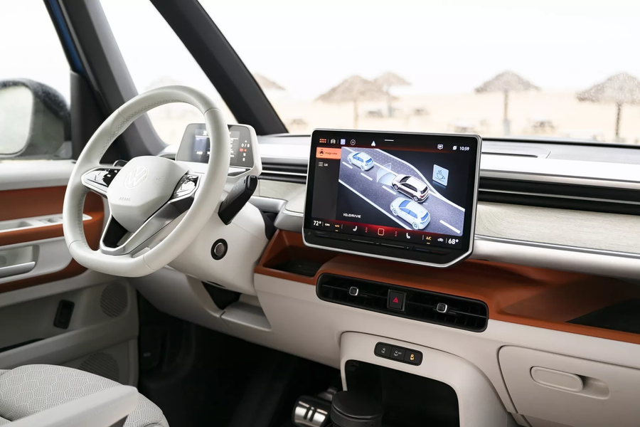 Сиденья с подогревом входят в стандартную комплектацию, а окна второго и третьего ряда тонированы. ID. Buzz оснащён самым большим люком на крыше из всех предложений Volkswagen Group. Имея длину 1712 мм и ширину 1036 мм опциональная панорамная крыша может меняться от непрозрачной до прозрачной благодаря электрохроматической технологии.