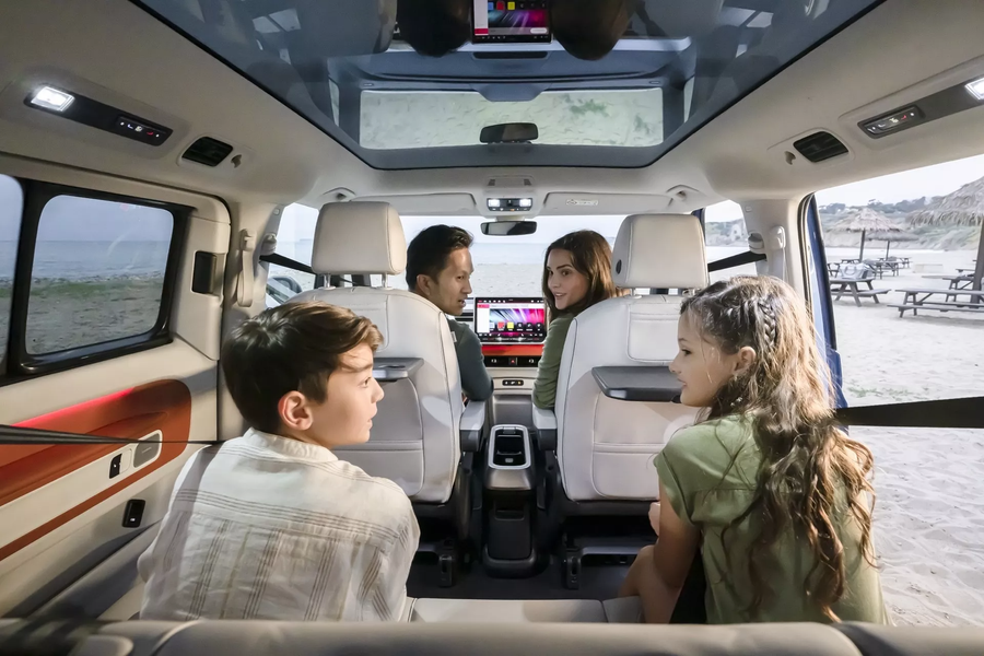 Стандартное оборудование включает сиденья с электроприводом, рулевое колесо с подогревом, раздвижные окна с электроприводом, зеркала заднего вида с электроприводом и подогревом, окружающее освещение и дверь багажного отделения с электроприводом. По всему салону разбросаны восемь зарядных портов USB-C, 110-вольтовая розетка спереди и 12-вольтовая традиционная розетка в грузовом отсеке.