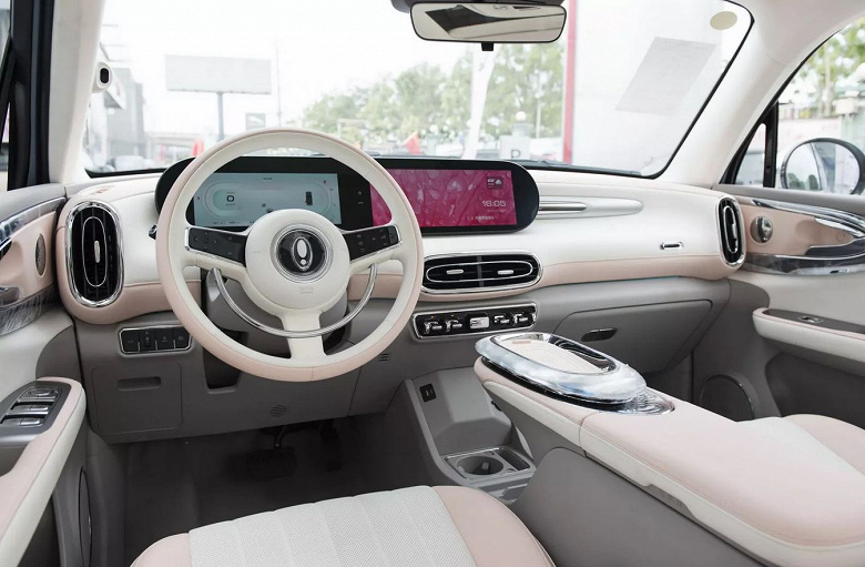 Габариты составляют 4401 х 1867 х 1633 мм, колёсная база — 2750 мм. Салон тоже выполнен на ретро-манер, в оснащении предусмотрена беспроводная зарядка для смартфона, люк в крыше, сиденья с массажем и вентиляцией, адаптивный круиз-контроль, система кругового обзора, аудиосистема с 10 динамиками.
