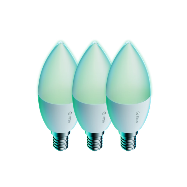 Новые лампы получили колбы в популярной форме свечи, цветовую температуру 2700–6500 К, мощность 5,5 Вт и поддерживают 16 млн оттенков цветов. Ими можно управлять с помощью виртуального помощника «Салют», настраивать приглушённый тёплый свет для отдыха, а яркий холодный — для работы, создавать световые эффекты, сценарии работы по расписанию и так далее.