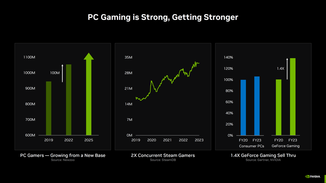 Компания Nvidia рассказала, что доходы от продаж видеокарт GeForce RTX 40 растут на 40% быстрее, чем в случае прошлого поколения.